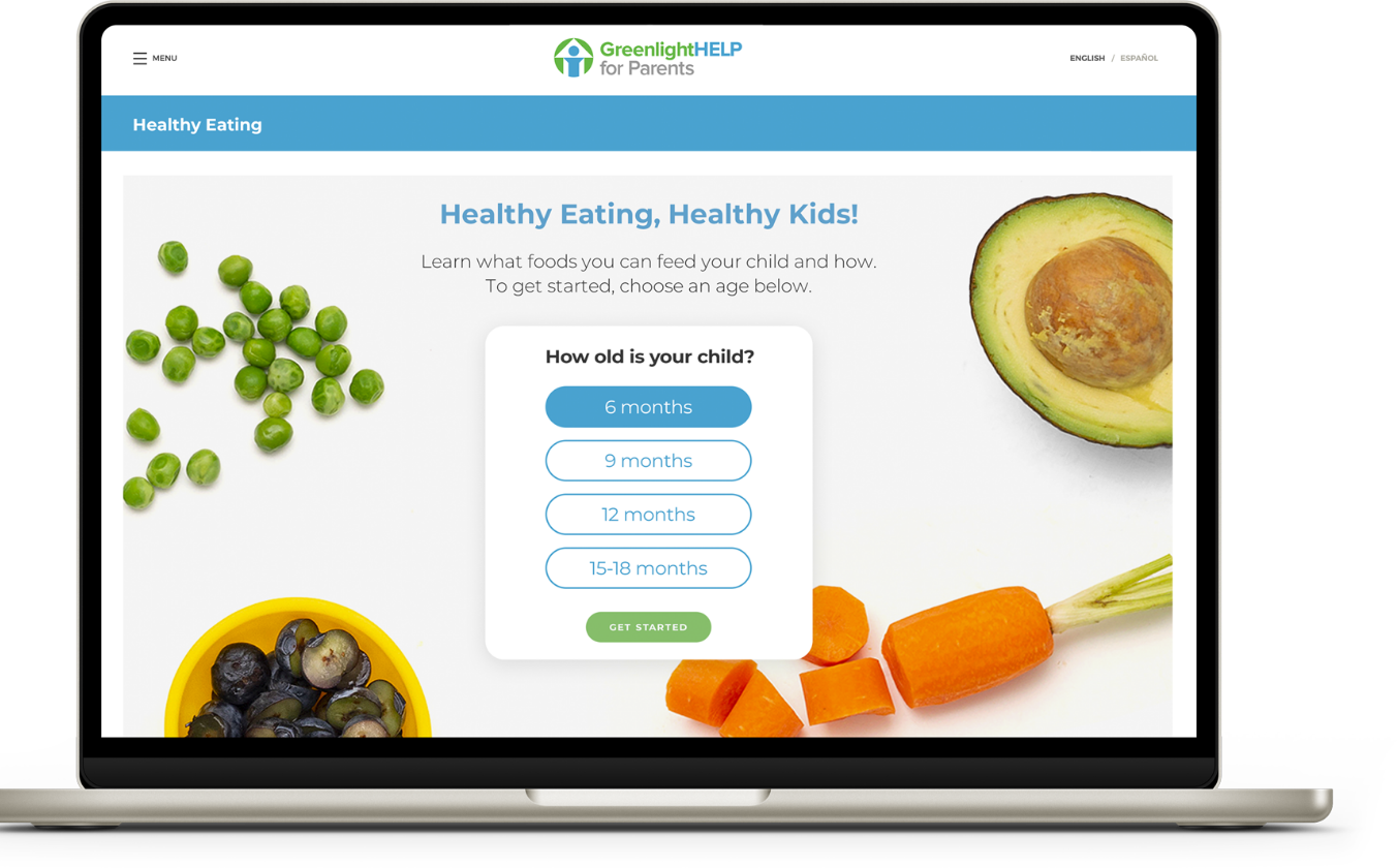 Find the Greenlight booklet that is right for your child's age. The first booklet is for a 2 month old baby. There are booklets for children up to 2 years of age. You can use the booklet as a guide for the Greenlight HELP Activity . You can also look at booklets on special issues like Sleep, Screen Time, and Healthy Eating for the Whole Family.